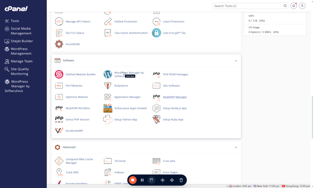 - Or scroll to the Software section and Click MultiPHP Manager.