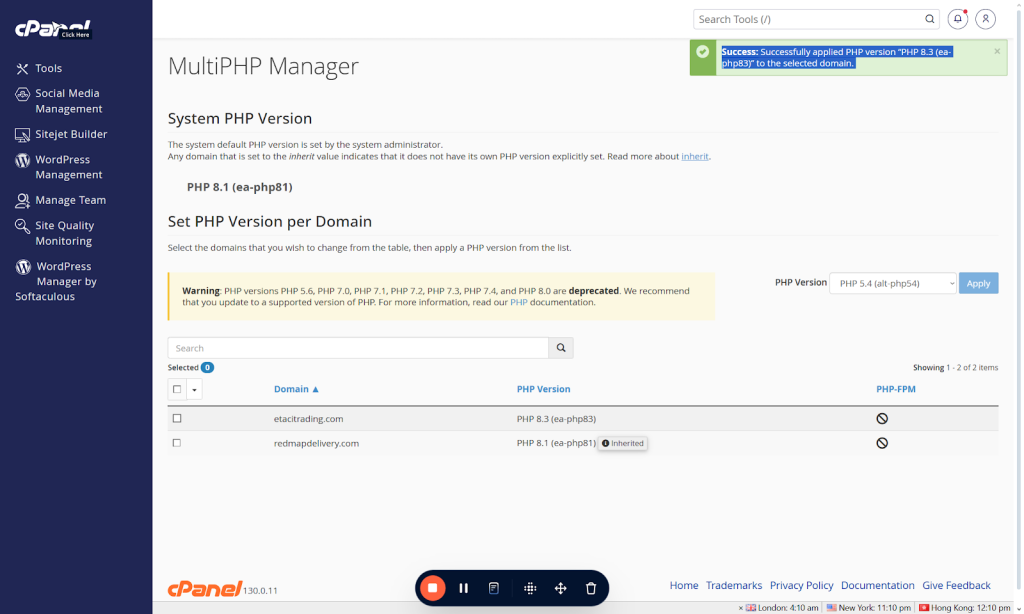 The good news? You can fix this easily using cPanel’s MultiPHP Manager.